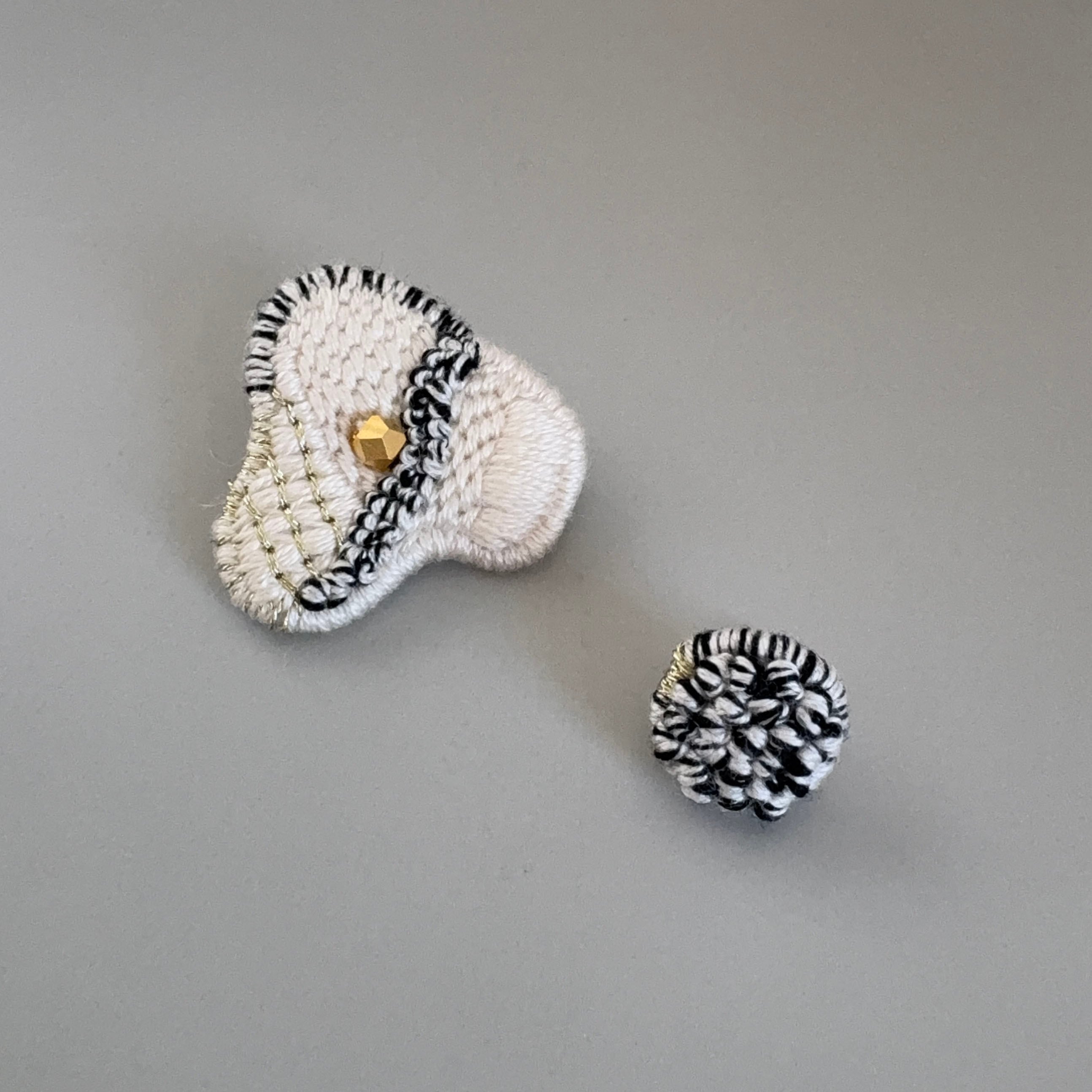 黒糸のラインと小さな真鍮ビーズを添えました。