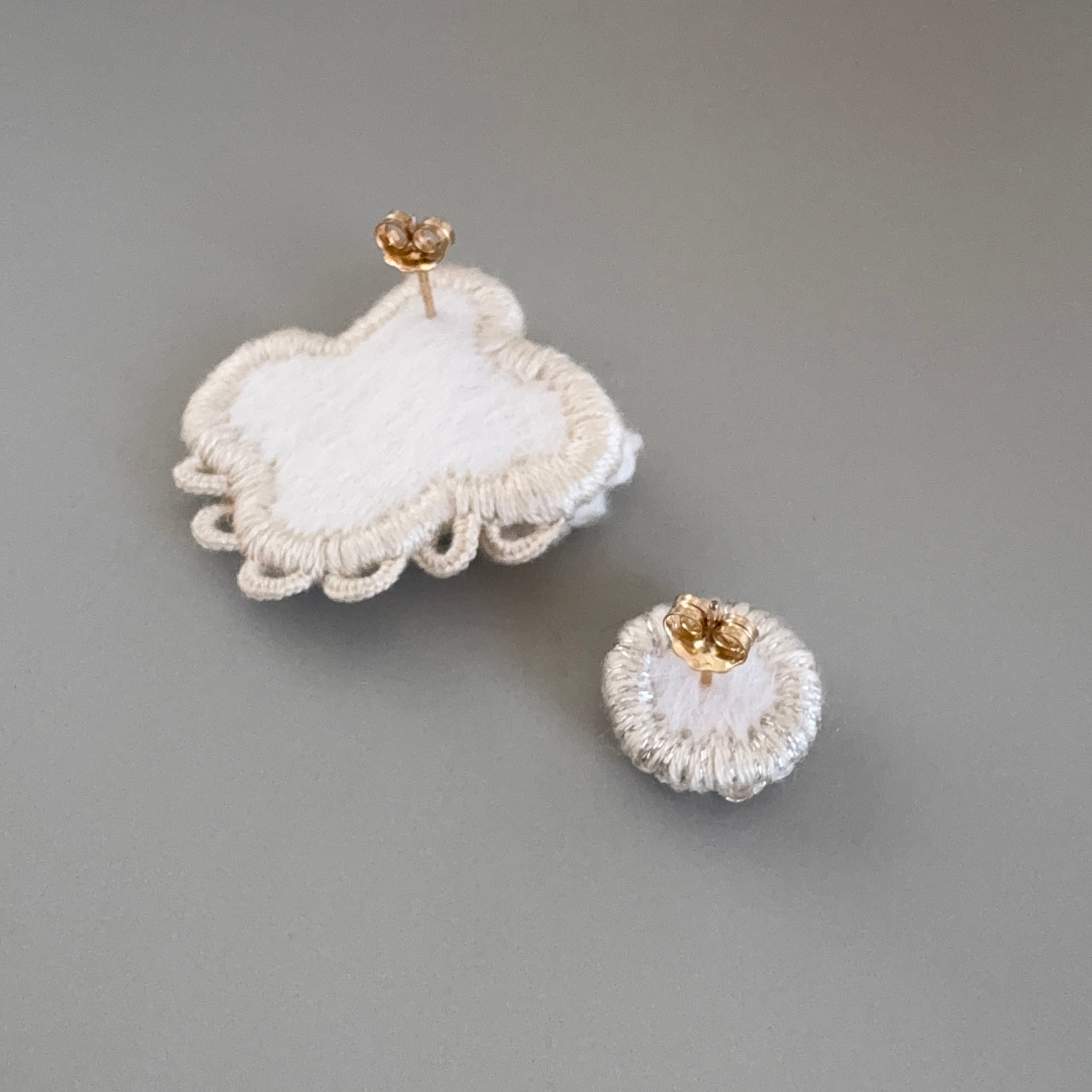 密に刺した白と銀の糸の粒が、静かな対比を生み出します。