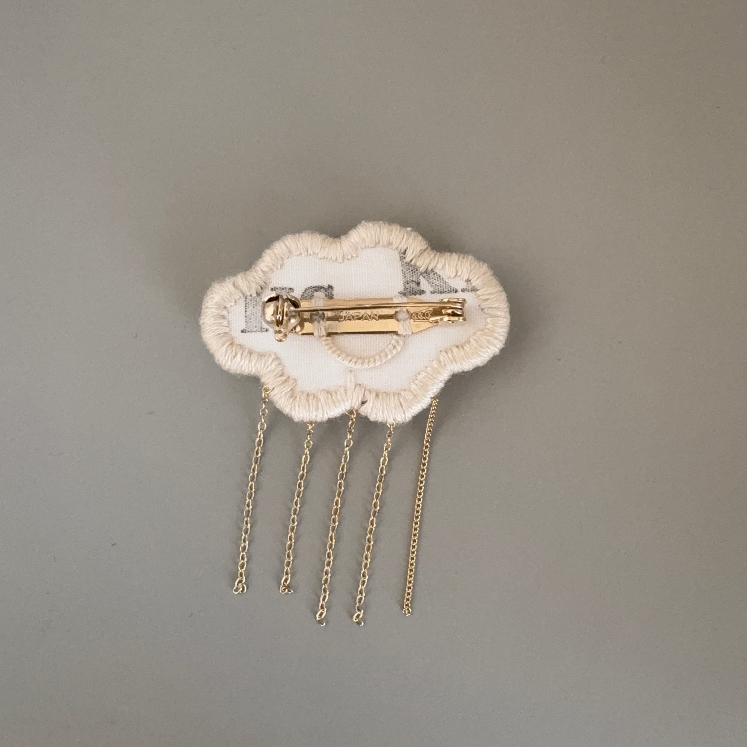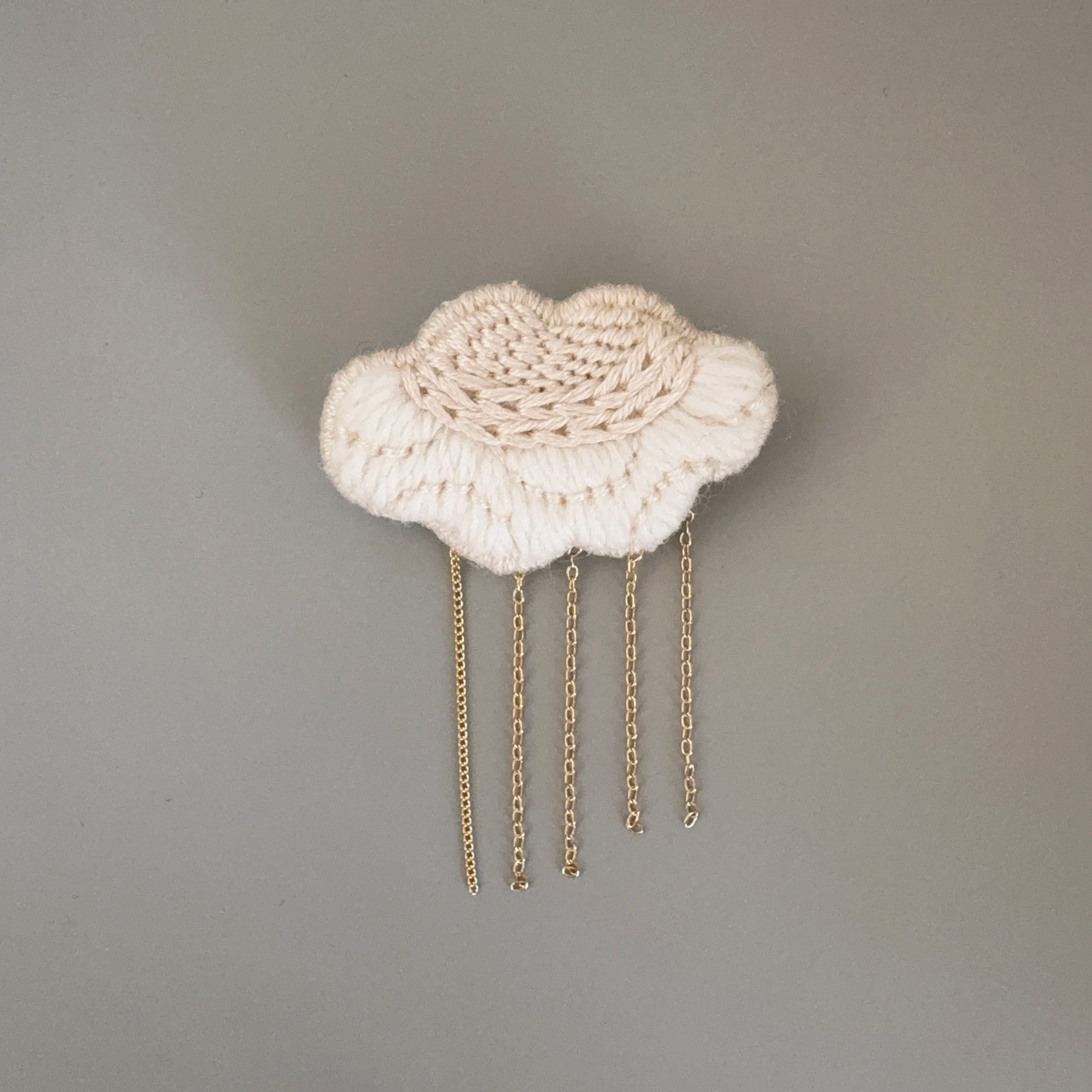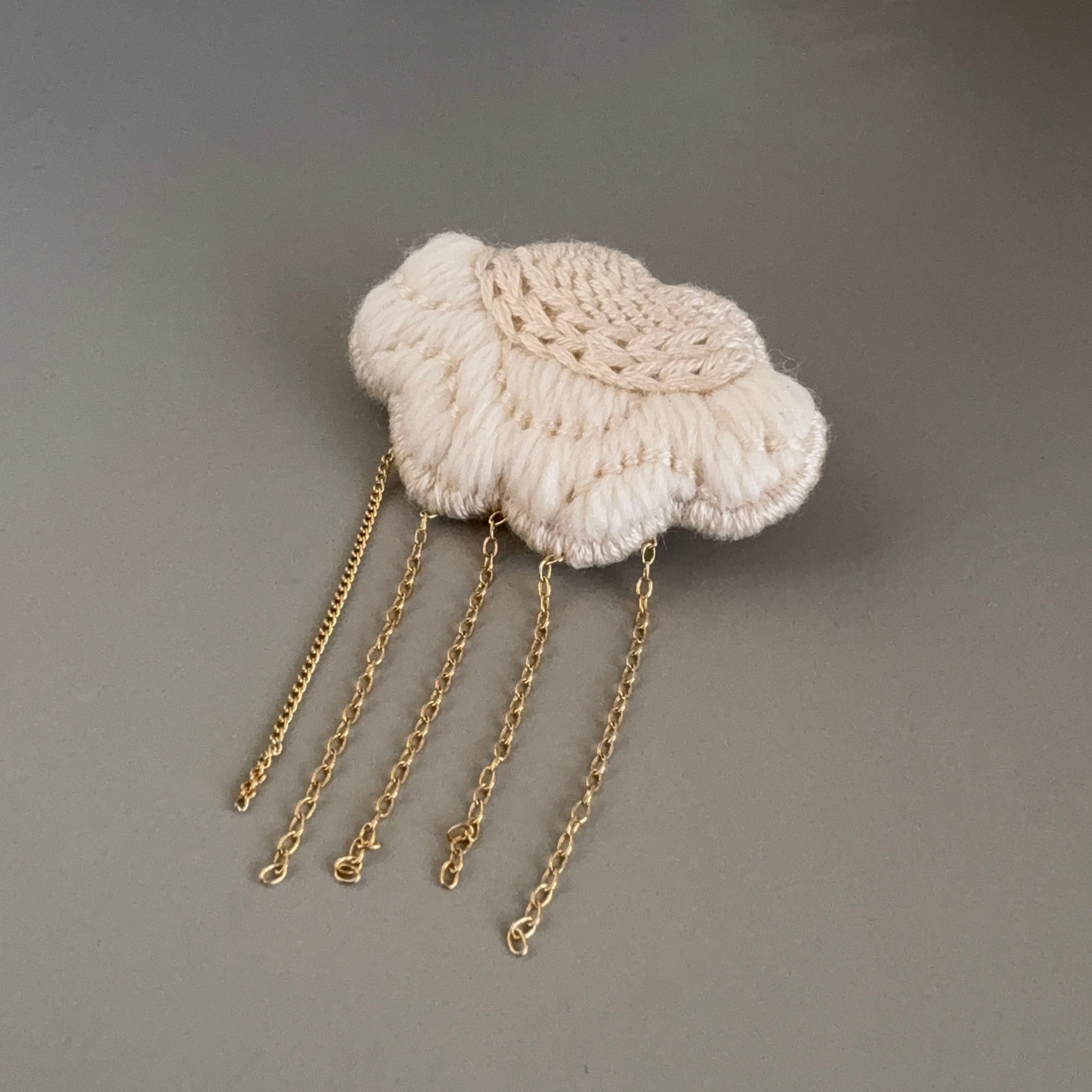 羊毛で刺繍した雲のブローチ。